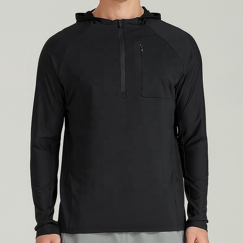 Outdoor stile base tinta unita abbigliamento sportivo con collo a cerniera camicia a maniche lunghe felpa sportiva personalizzata per gli uomini