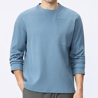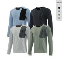 Maglietta autunnale traspirante comoda traspirante da uomo a manica lunga da uomo con tasca sul petto a sinistra