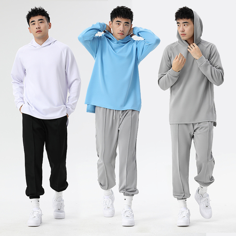 Outdoor semplice sport 2 pezzi set da corsa pantaloni con cappuccio da uomo